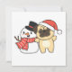 Pug With Snowman In Winter For Christmas Holiday C Card