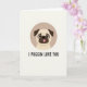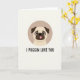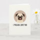 This cute greeting card features a stylized pug’s face centered inside a soft circular frame on a warm cream background. The pug has fawn-colored fur with a deep brown mask and ears, big shiny eyes, and a tiny pink tongue peeking out for a sweet, friendly look. Under the portrait, the card reads “I PUGGIN LOVE YOU” in thick, easy-to-read block letters. The text sits near the bottom and stands out clearly against the light background. The simple design keeps the focus on the pug and the message, making it feel cozy and heartfelt. It’s a fun way to say you care, whether it’s for a partner, a close friend, or a fellow dog lover ❤️💌.