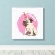 Image By Afishka | Shutterstock. Image ID: 1170091624 | Adorable beige puppy Pug in a ice cream party cap on a pink background. Pugicorn - lettering quote.