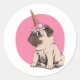 Image By Afishka | Shutterstock. Image ID: 1170091624 | Adorable beige puppy Pug in a ice cream party cap on a pink background. Pugicorn - lettering quote.
