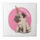 Image By Afishka | Shutterstock. Image ID: 1170091624 | Adorable beige puppy Pug in a ice cream party cap on a pink background. Pugicorn - lettering quote.