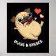 Pugs And Kisses Funny Pug Doggy Pun Dark BG Poster