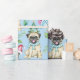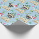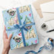This adorable Pugs Christmas wrapping paper is perfect for any Christmas gift. A light blue background with adorable pugs dressed in Santa hats and Christmas trees throughout.