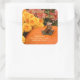 A beautiful orange pumpkin with golden yellow and coral coloured mums in a delightful fall scene with lots of rustic country charm decorates these Thanksgiving square envelope seals with text that reads, "Thanksgiving Greetings!" Customise these with your name and address using Zazzle's many different font styles and colours or remove it if you would prefer to use return address labels instead. These are part of a coordinating set that includes a greeting card, 2 different size postcards, stationery sheets, address labels in 3 different sizes, custom envelopes, envelope liners and envelope seals in 5 different styles. This image can be transferred to other products. If you need any help, please don't hesitate to contact me, and I will be more than happy to assist you. You may contact me at KarenCoffelt@wolfmoonartanddesign.com. Original photography copyright 2003 by Karen Coffelt.