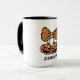 personalised name happy Halloween mug ,retro groovy Halloween whimsical pumpkins and skull bow custom mug