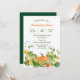 A variety of pumpkins and squash are the features in this Thanksgiving dinner invitation, with an autumn harvest grouping of leaves, vines, and yellow blossom flowers. At the centre is your text in dark green and orange, and there is plenty of room for your customisation. Everything is placed on a crisp white background. The back of the invitation is solid matching dark green. Colourful and festive!