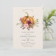 Autumn Baby Shower invitation featuring watercolor pumpkin and floral illustrations in autumn shades of burgundy, orange, reds and greens.Different background colour options available.