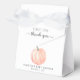 Cute gender-neutral baby shower favour box featuring "thank you" in simple grey typography and a stylish script with swashes, and an orange pumpkin watercolor.