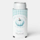 Pumpkin Blue Gingham Plaid Boy Baby Shower Seltzer Can Cooler