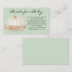 This cute fall baby shower book request card features a watercolor pumpkin and foliage on a soft green background. Easily customisable. Original Watercolor © Michele Davies.