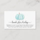 A cute baby boy shower invitation enclosure card that features a pastel blue watercolor of a pumpkin and "books for baby" in a pretty stylish soft grey script with swashes. Personalise the books for baby request in simple grey typography.