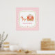 Add a fairy tale flair to the girls room with this elegant and pretty poster! It features a horse pulling on a pumpkin style carriage that is decorated with lots of floral elements. A decorate wreath surrounds the design. Pink zigzag chevron for background. Personalize with the little girls name. Great for the autumn fall season!