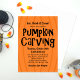 Stylish Eat, Drink & Carve invitations set the tone for a fun pumpkin carving party! Invitation features an orange pumpkin background with black carved title and custom text. The back of the card features a pattern of jack o' lantern pumpkins.