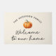 Welcome to our home modern script fall autumn pumpkin home decor personalised doormat design.