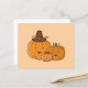 Cheerful pumpkin family with a brown hat and red bow, warm orange hues and friendly faces; ideal for Halloween collections and autumn wear for families and kids alike.