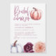 Floral and pumpkin fall bridal shower invitation in purple and peach. With beautiful watercolor floral, foliage and pumpkin design. Ideal fall/autumn design.