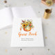 Rustic baby shower guest book with a pumpkin flower bouquet of sunflowers and foliage. Perfect for an autumn fall baby shower. The words can be changed to suit your own details or requirements