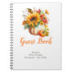 Rustic baby shower guest book with a pumpkin flower bouquet of sunflowers and foliage. Perfect for an autumn fall baby shower. The words can be changed to suit your own details or requirements