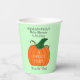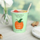 Light mint background. A sweet baby is on the way is written in white and black typography. Mum-to-be Name and Date of Baby Shower in black typography. Whimsical handpainted orange pumpkin with green stalk. Original Artwork Design by TamiraZDesigns.