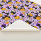 Cute black cats amongst pumpkins, halloween candy, bats, broom, stars, candy corn, acorns, full moon, autumn leaves and a cut ghost all set in a backdrop of light purple