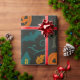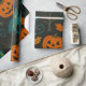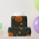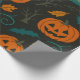 A festive Halloween design featuring glowing jack-o’-lanterns, eerie haunted houses, swirling bats, and autumn leaves. Bare trees and teal swirls add a mystical touch, creating a spooky yet playful atmosphere perfect for seasonal wrapping paper, décor, and craft projects.