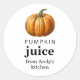 Editable homemade pumpkin juice label featuring a vintage style pumpkin illustration. Make your own canning labels for your favourite homemade recipes. Perfect for preserves, homemade gifts or as kitchen pantry organiser.
