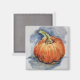 A lovely watercolour Pumpkin in shades of orange with a blue background.