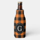 Pumpkin Orange Blk Buffalo Check Plaid 1I Monogram Bottle Cooler
