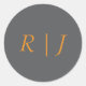 Pumpkin Orange Grey Monograms Fall Autumn Wedding Classic Round Sticker
