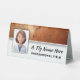Command attention with this sleek table tent sign featuring a rich faux pumpkin orange stone finish. Ideal for professionals in luxury industries, it showcases your photo, name, and title on the front, with a space for your logo on the back. Whether you’re networking, presenting, or displaying your brand, this double-sided, fully editable design adds elegance and authority to any setting. Make your mark in style—customise your sign today!