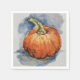 A lovely watercolour Pumpkin in shades of orange with a blue background.