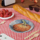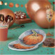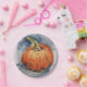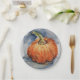 A lovely watercolour Pumpkin in shades of orange with a blue background.