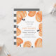 Halloween themed baby shower invitation featuring a whimsical and fun orange and black watercolor painted pumpkin design by Shelby Allison.