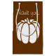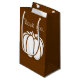 Package gifts for your attendants, groomsmen, family, and anyone else that deserves a little something special in these autumn-themed gift bags, perfect for any fall wedding or event. The front of this chocolate brown bag is decorated with a white pumpkin and a simple, "Thank you." The back has a matching pumpkin and sample text that you can customise to fit the details of your special day. Be sure to check out the other products in the Pumpkin Patch in Chocolate set to create a truly coordinated look for your event.