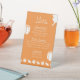 Give your wedding guests important information, such as the menu options for your reception, with this pedestal sign. A bright orange background sits behind white text that you can customise for your special event, and white oak leaves and pumpkins decorate the sign on the sides and in a pattern across the bottom to add a sweet seasonal touch for your autumn event. Be sure to check out the full Pumpkin Patch in Orange collection to find more products, including invitations, guest books, napkins, and even favour boxes, with matching designs that will allow for a truly coordinated wedding or special event.