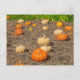 A digitally enhanced photograph of a pumpkin patch printed on a postcard.