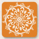 This white mandala sits on a pumpkin pie coloured background. The colour is creative and warm. Part of the Payon Mandala Collection.