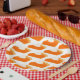 Pumpkin pie is my favourite fall and holiday pie, so I made a cute pattern with them! Each pie is topped with lots of sweet whipped cream, just the way I like it! It's shown here on round, paper party plates. Add your favourite colour background instead of white if you prefer. Easily adjust the pattern size too. Perfect for a Thanksgiving get-together!