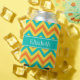 Pineapple Yellow, Pumpkin Orange and Teal Large Chevron Zig Zag Pattern, Teal Ribbon Name Monogram Label