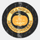 Happy Halloween, grinning jack o lantern. This orange pumpkin image on a black background is made to have a retro, worn out & distressed look.
