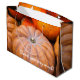 Pumpkins of beige and orange colour on hay. Pumpkin symbolises magic, the unknown and misterious. Autumn, fall, Halloween and Thanksgiving theme. Prints and gifts for anyone. You can change or delete the template text Happy Halloween! and Thank you very much! on both sides as you like