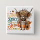 Peaceful, colourful design featuring a fall / autumn scene with a coffee, fall flowers, fall leaves and a bull. The colourful inspirational text reads: "Pumpkin spice and Jesus Christ". This design is available on a wide variety of products.