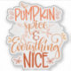 The phrase "Pumpkin Spice & Everything Nice" evokes a cosy, whimsical vibe associated with autumn and the delightful flavours of the season.