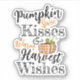 This cute design features the phrase "Pumpkin Spice Kisses & Warm Harvest Wishes" as well as a cute orange and white buffalo plaid pumpkin. All of the text, fonts, and colors may be customized. Enjoy!