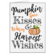 This cute design features the phrase "Pumpkin Spice Kisses & Warm Harvest Wishes" as well as a cute orange and white buffalo plaid pumpkin. All of the text, fonts, and colors (including the background) may be customized. Enjoy!