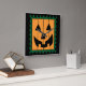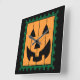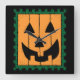 Cute Jack-O-Lantern pumpkin faced stamp Halloween decor. Pumpkin face is orange with green trim. Design created by Black Brook Photography with graphic from Pixabay September 2014.