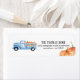 Gorgeous greenery with pumpkins invitation featuring a blue truck filled with pumpkins.