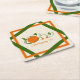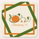 I love when it is time to work with fall colours! These coasters feature a large orange pumpkin and green vines with leaves in the centre, and your text is below. The design is framed with fun orange and green stripes, like lattice on a pie. Please enjoy your event!