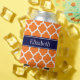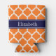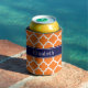 Pumpkin Wht Moroccan #5 Navy Blue Name Monogram Can Cooler