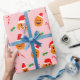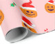 A fun and cute pink wrapping paper with silly pumpkins in santa claus hats.